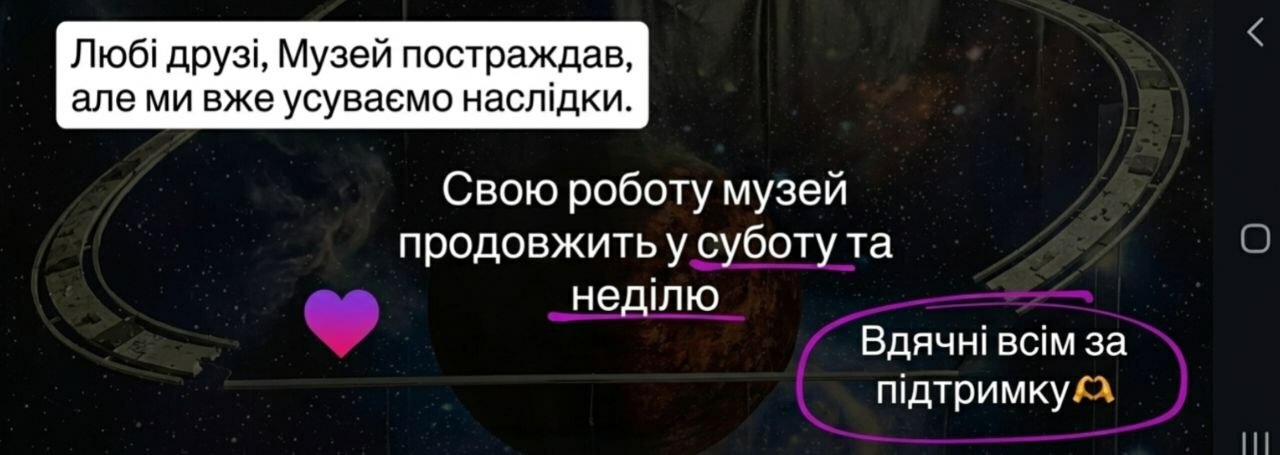 Музей працює, у разі відсутності електропостачання, від акумуляторів ☀️